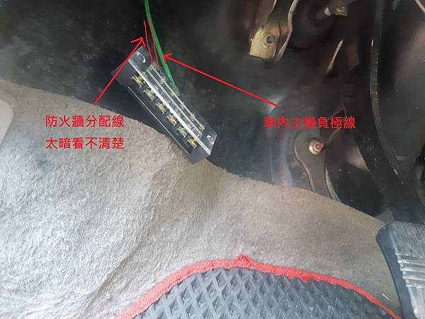 4.防火牆接地(改善車室內電器效率) + 車室內串接負極分配盒(額外加裝設備如擴大機等)